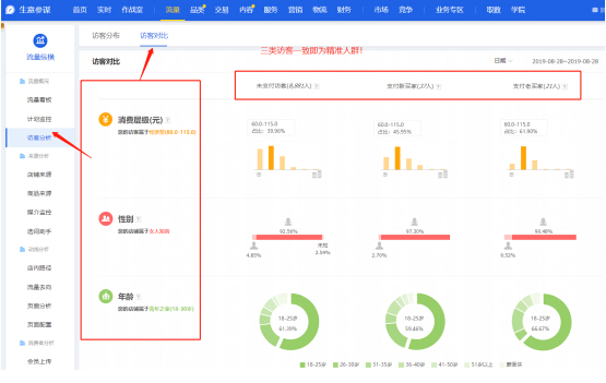 首先要确认自己店铺的人群,在生意参谋---流量---访客分析里去看,我找回来这个款,是不是刚好适合我店铺人群。
